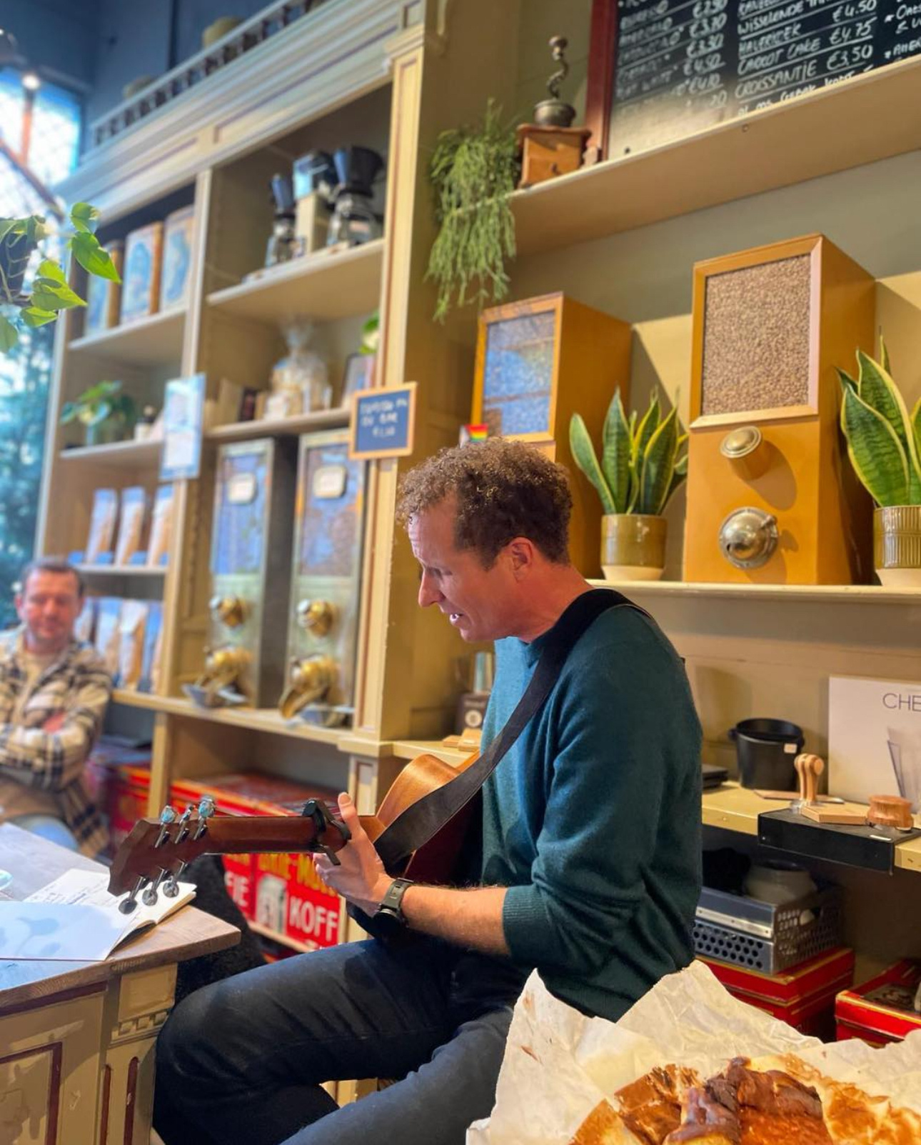 Bossche singer-songwriter - en trouwe La Jeu-liefhebber - Stijn van der Kreij klopte een tijdje terug bij ons aan met een idee dat bij hem kriebelde. Na een (h)eerlijk vrijdags koffietje kreeg hij een golf van inspiratie en een fantastisch plan; live muziek in de koffiebar op elke eerste zondag van de maand. Zo bedacht, zo gedaan, want sinds een paar maanden trakteert Stijn ons elke eerste zondag op zelfgeschreven liedjes en vult hij ons koffieparadijsje met sfeervolle gitaarklanken. Zijn muziek creëert een warme, ontspannen ambiance en is, in combinatie met je favoriete bakkie, de perfecte manier om je week goed af te sluiten.