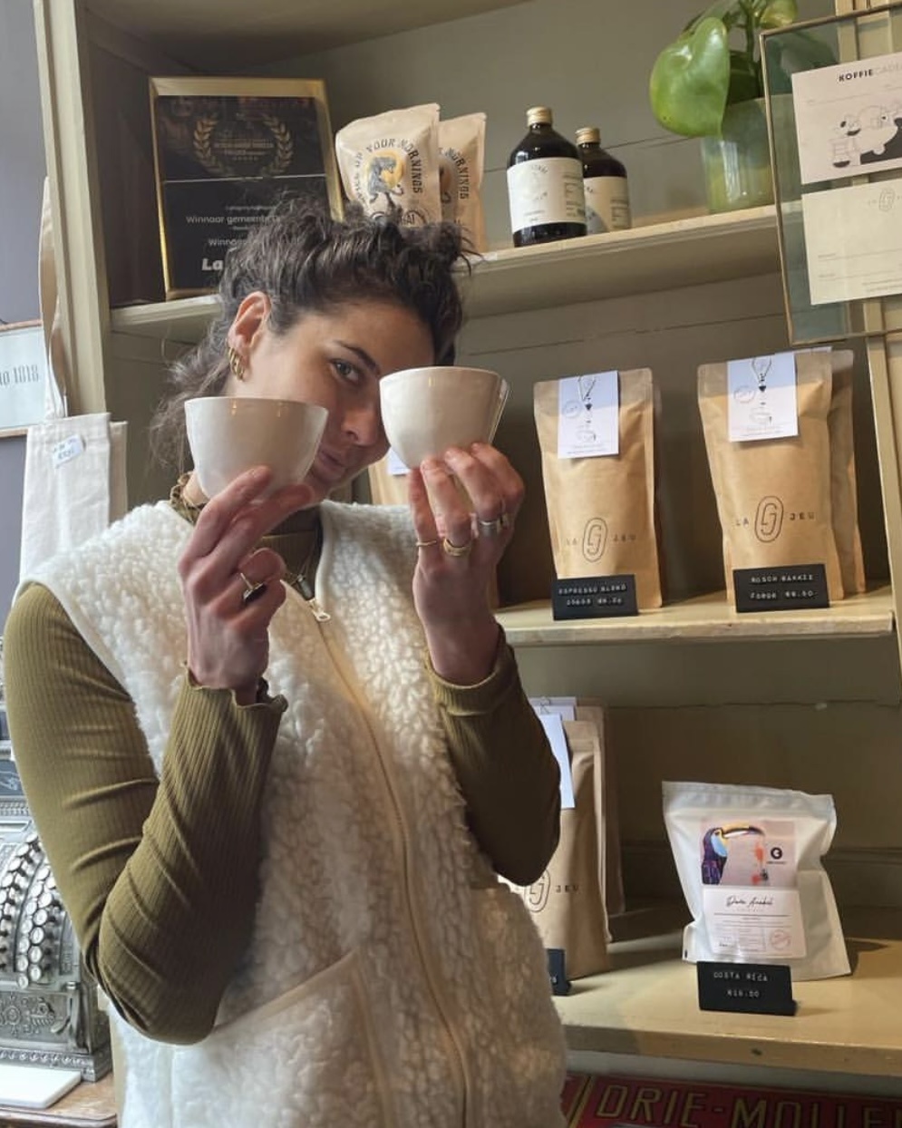 Met jarenlange koffie-ervaring krijg je automatisch ook jarenlange koffiekopjes-ervaring. En dat niet elk kopje geschikt is voor een goede espresso of mooie latte art, weet Larissa, onze pro-barista, maar al te goed. In de koffiebar gebruiken we dus niet zomaar een willekeurig bakkie, maar schenken we ons vloeibare geluk in de enige echte La Jeu kopjes. Deze unieke, keramieken kopjes zijn door Larissa, met een beetje hulp van mama La Jeu zelf ontworpen, gemaakt en gebakken om jouw koffie-ervaring nog bijzonderder te maken. Omdat alle kopjes met de hand zijn gemaakt, zijn ze dus allemaal uniek - net als de koffie die we serveren. En goed nieuws: je kunt deze kopjes bij ons in de winkel kopen. Zo neem je de volledige La Jeu-ervaring mee naar huis!